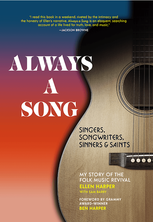 March 2022: A Note from Hope Katz Gibbs, creator, Inkandescent PR + Publishing Co.— It is an honor to feature this 2021 book by Ellen Harper and Sam Barry: Always a Song, a collection of stories from Ellen, a singer, and songwriter, and the folk matriarch and mother to the Grammy-winning musician Ben Harper (pictured, above).